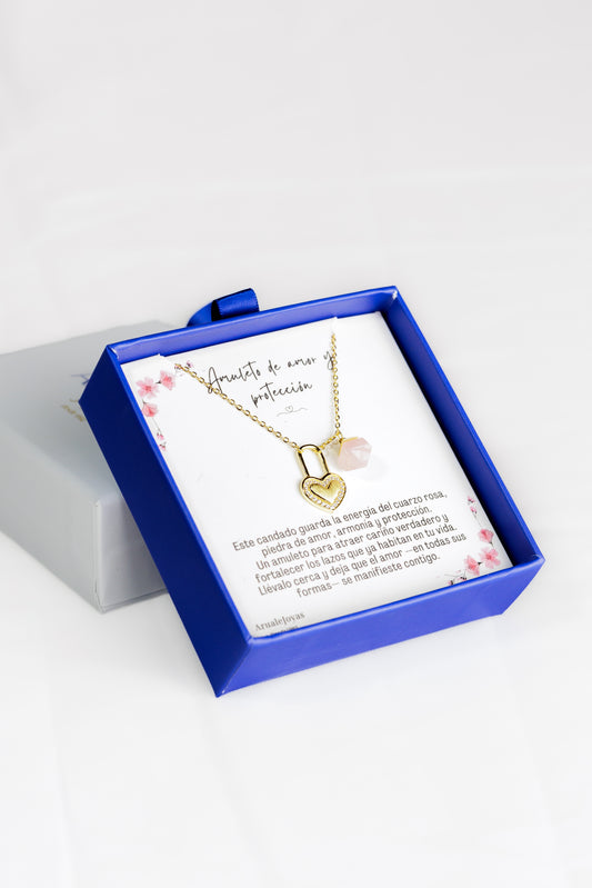 Colgante Amuleto Amor Candado Corazón Cuarzo Rosa Plata De Ley Aruale Joyas