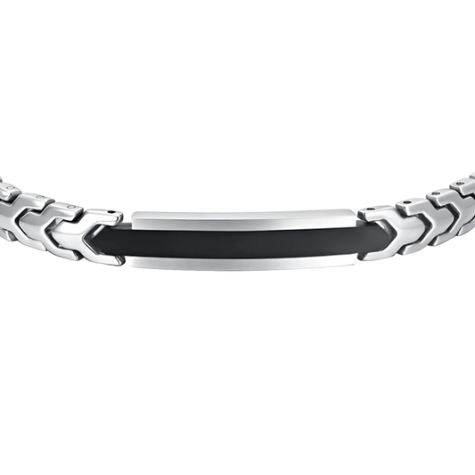 Pulsera de Hombre de Acero con Detalle de Cristal Negro