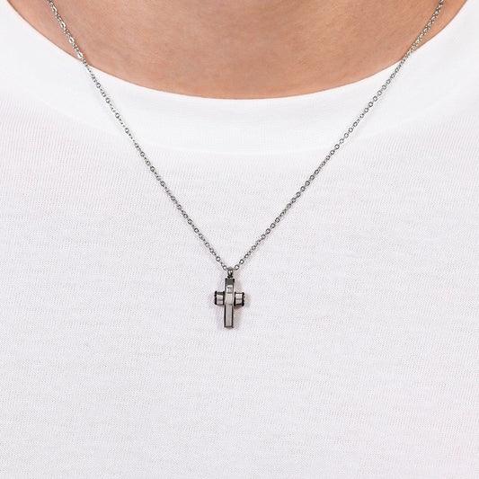 Collar Acero Hombre Cruz Plateada Negra Luca Barra