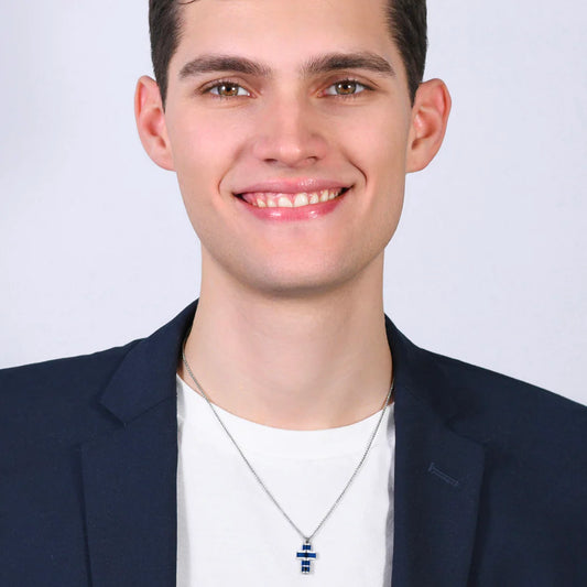 Collar Acero Cruz Azul Eléctrico Hombre Luca Barra