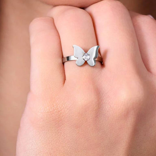 Anillo Acero Ajustable Mariposa Lisa Circonita