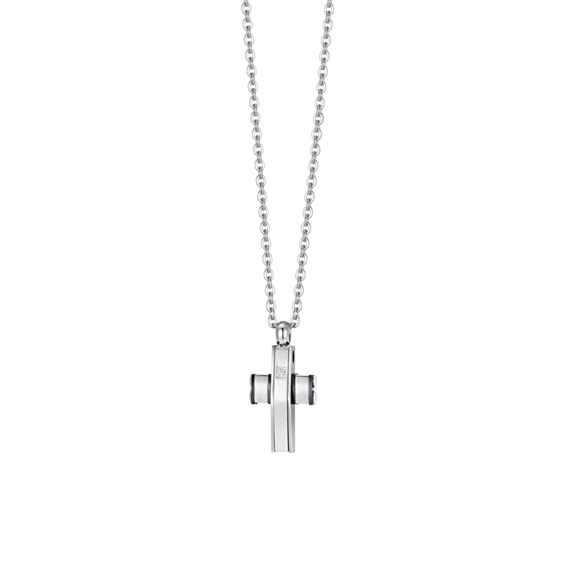 Men's steel necklace with a silver-colored cross and black sides from the Luca Barra brand.