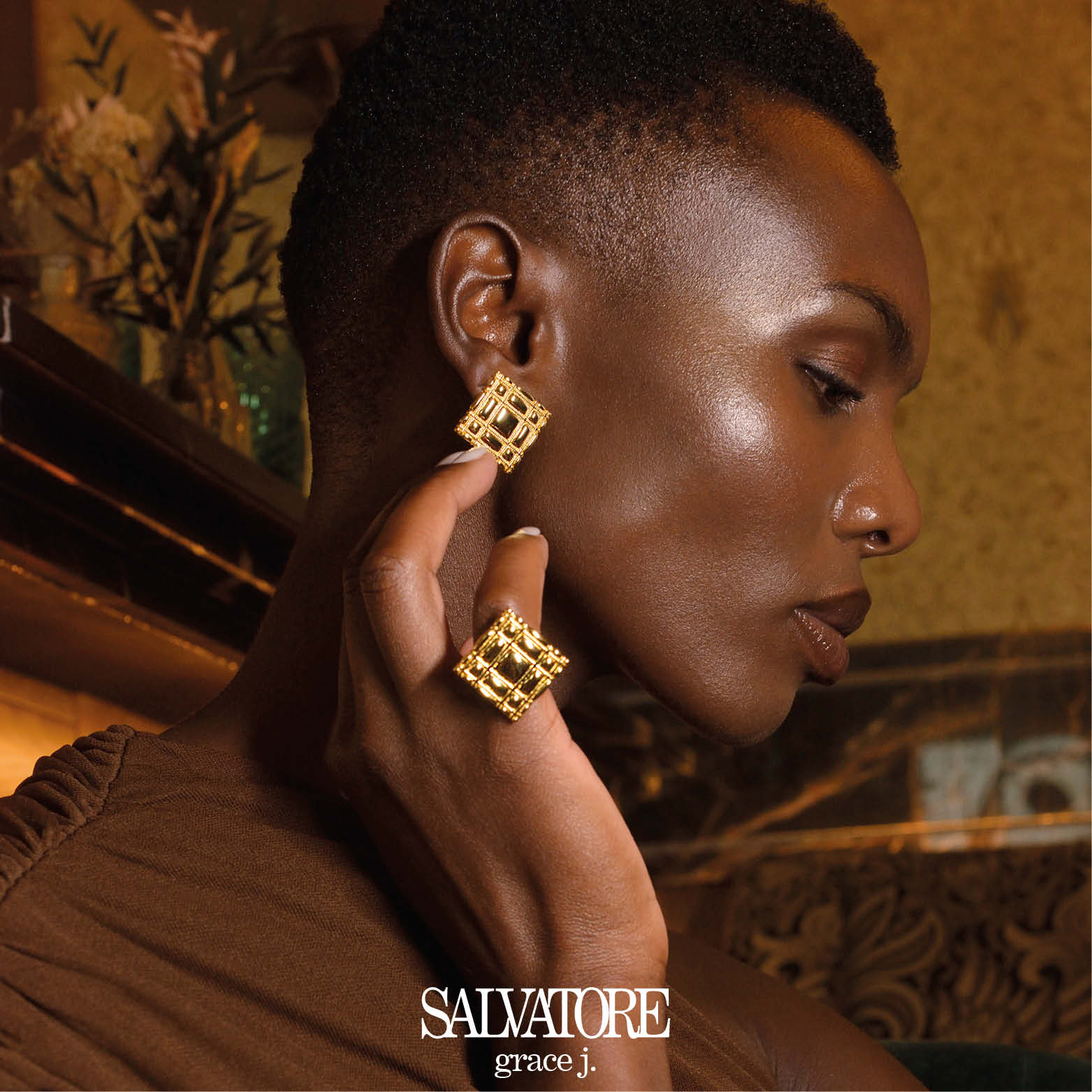 Anillo Metal Chapado Dorado Cuadrado Tartán