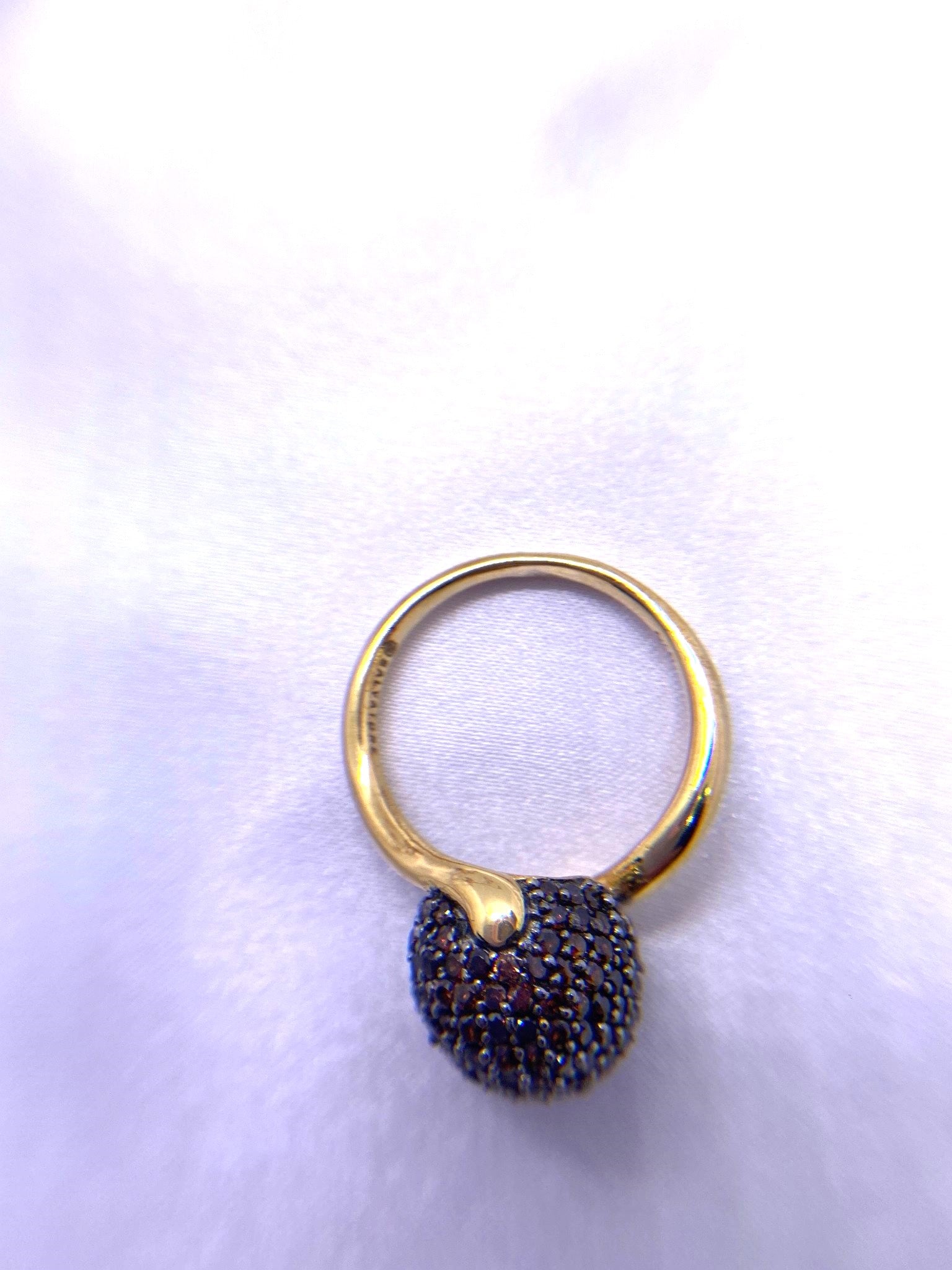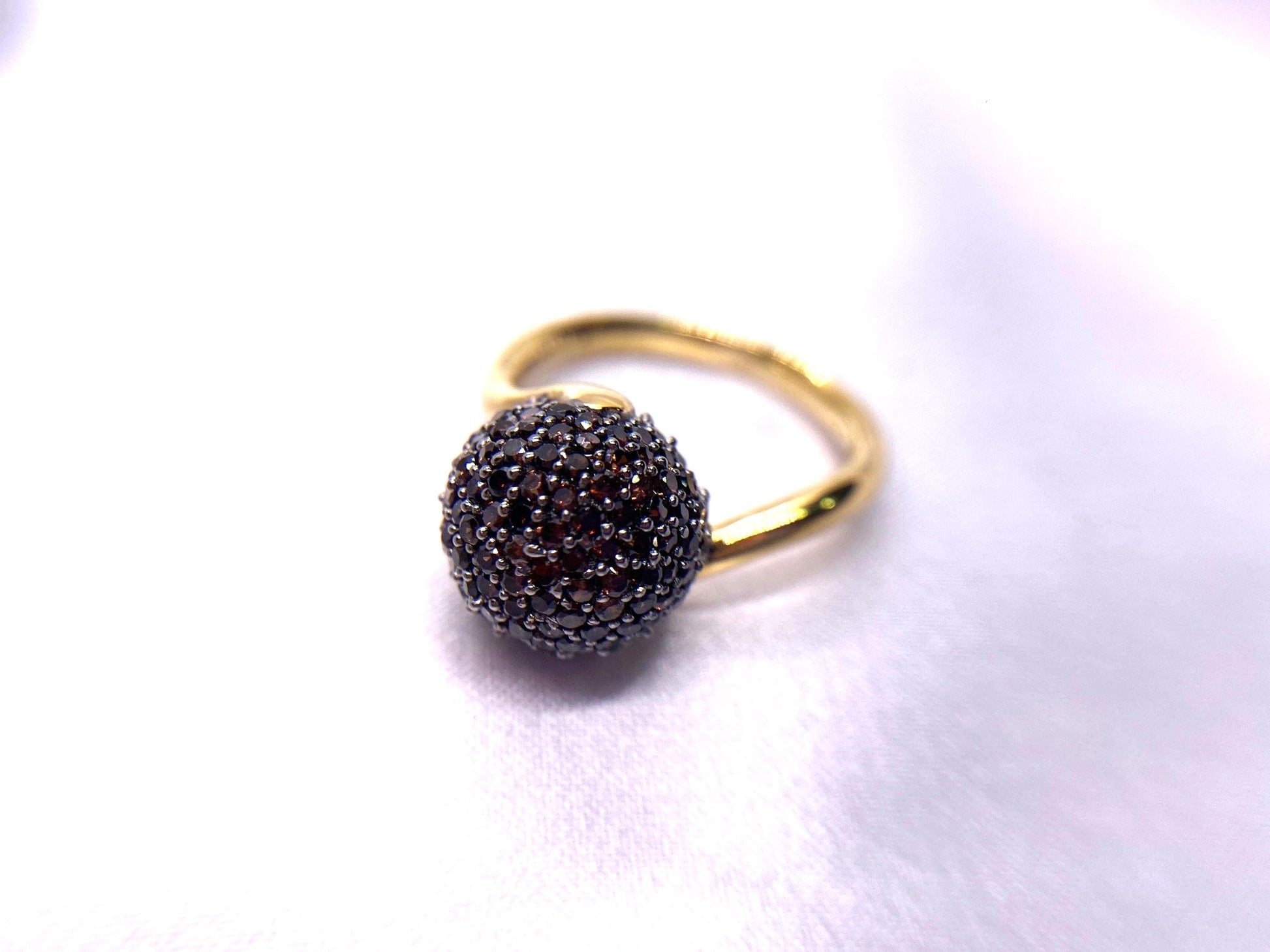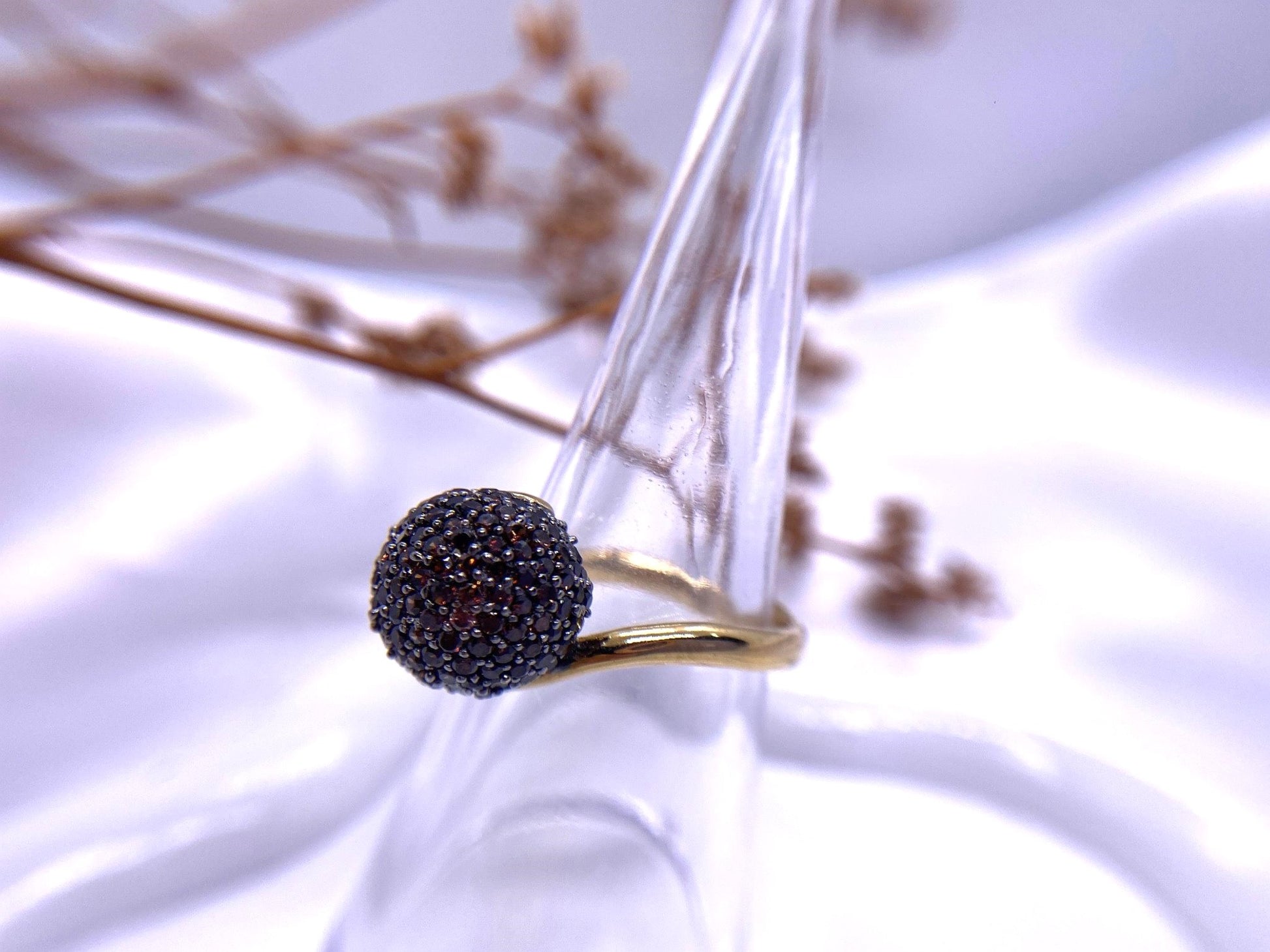 Anillo de plata de ley 925 con chapado de oro de 18K con bola y circonitas negras diseño vintage de la marca Salvatore. Talla 16.