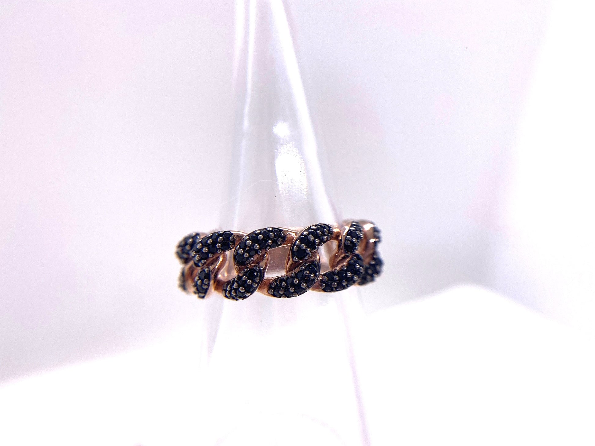 Anillo de plata de ley 925 con chapado en oro rosa con cadena de circonitas negras de la marca Salvatore. Talla 14