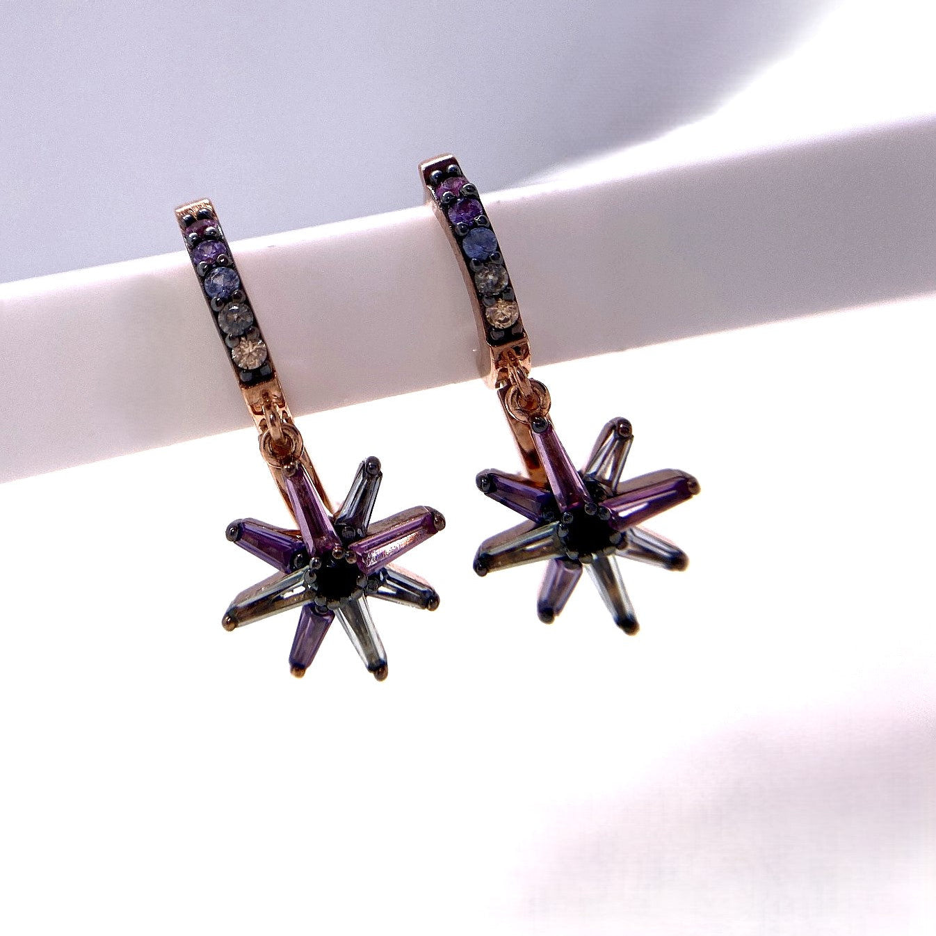 Pendiente de aros de plata de ley 925 con estrella y circonitas de colores de la marca Salvatore.