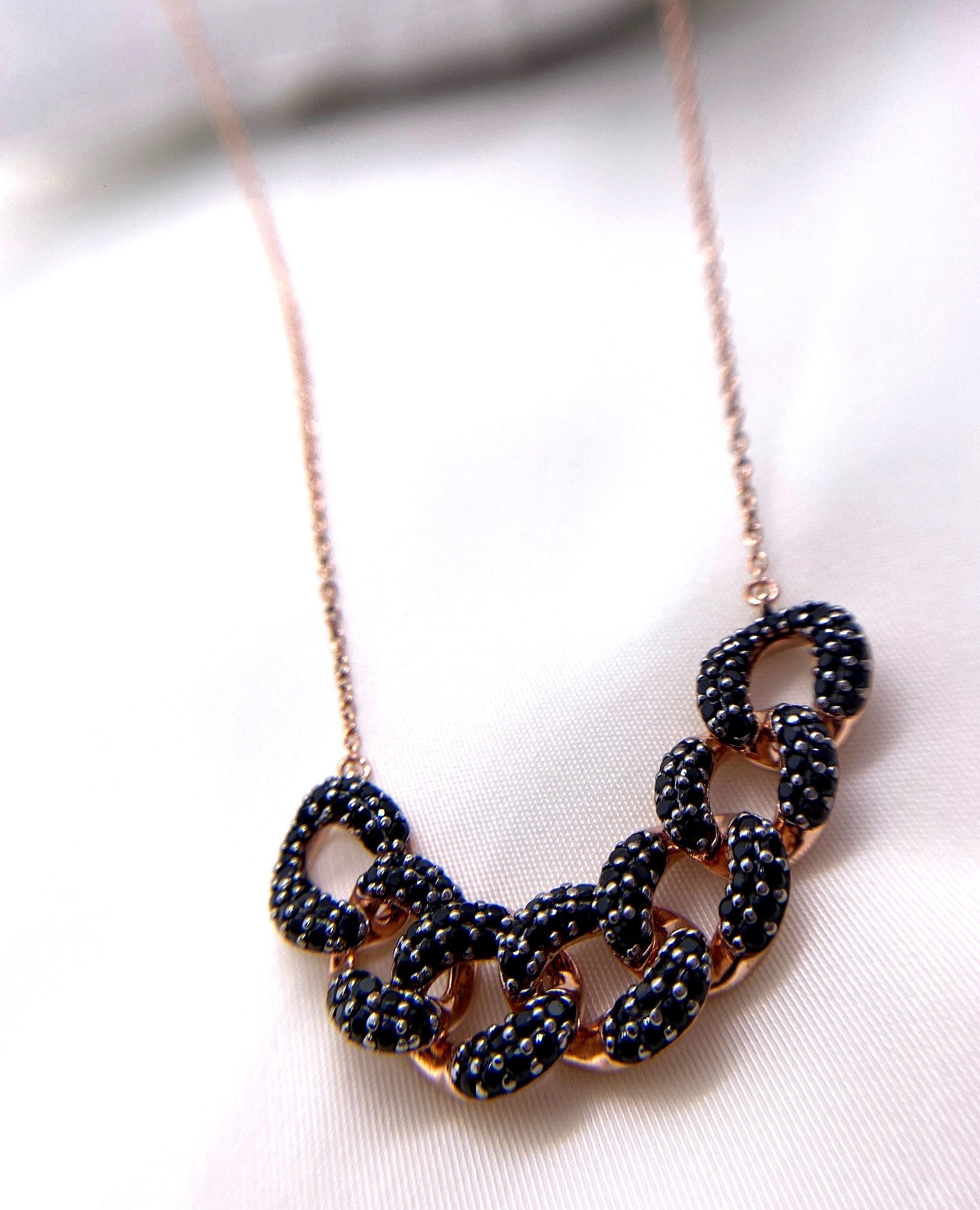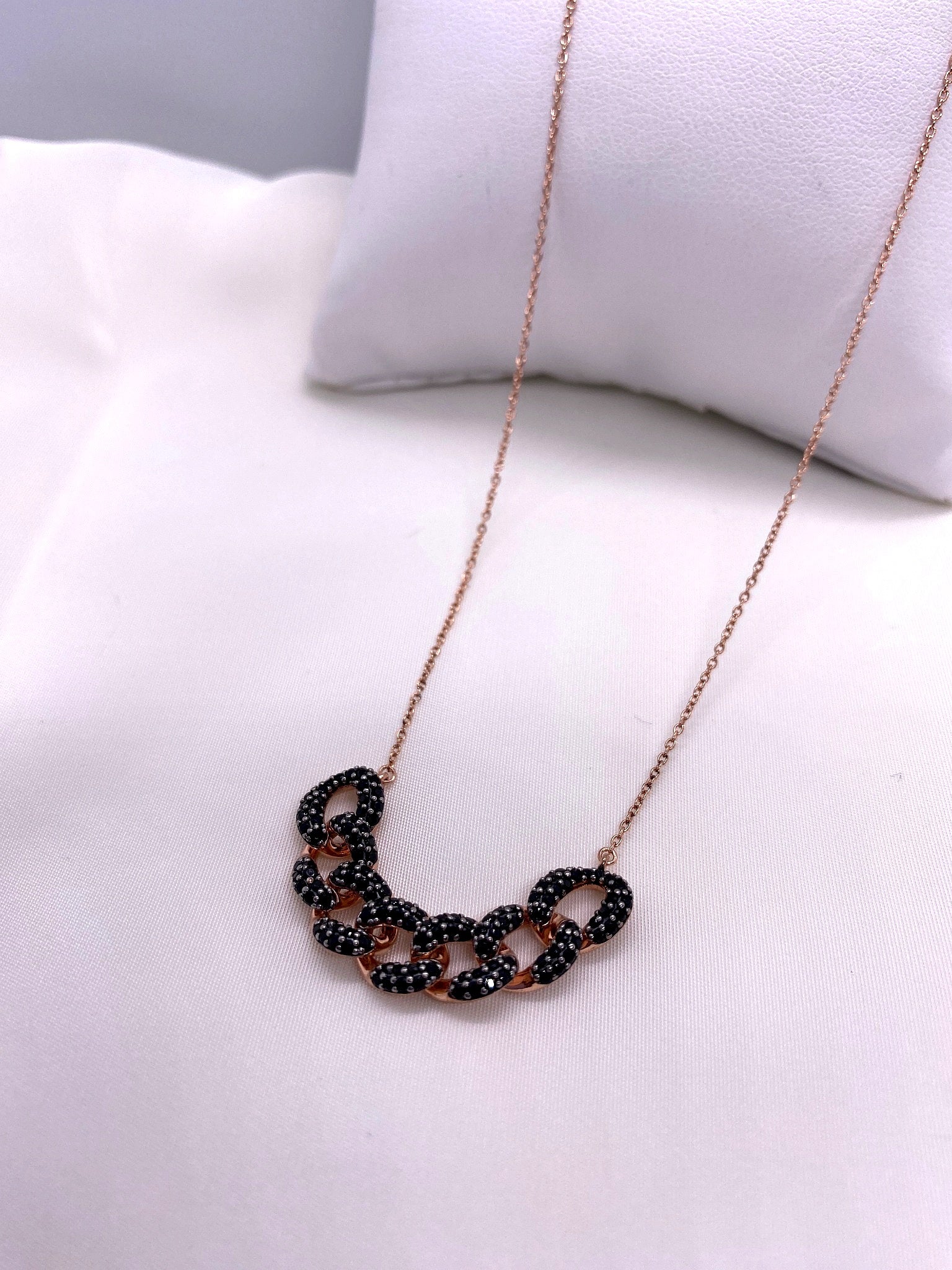 Colgante Cadena Negra Plata 925 Chapado Oro Rosa Salvatore