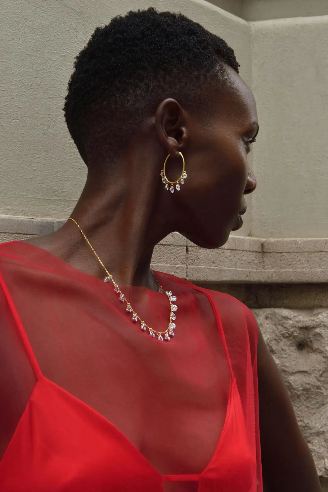 Collar de plata 925 con baño de oro, adornado con circonitas blancas brillantes.