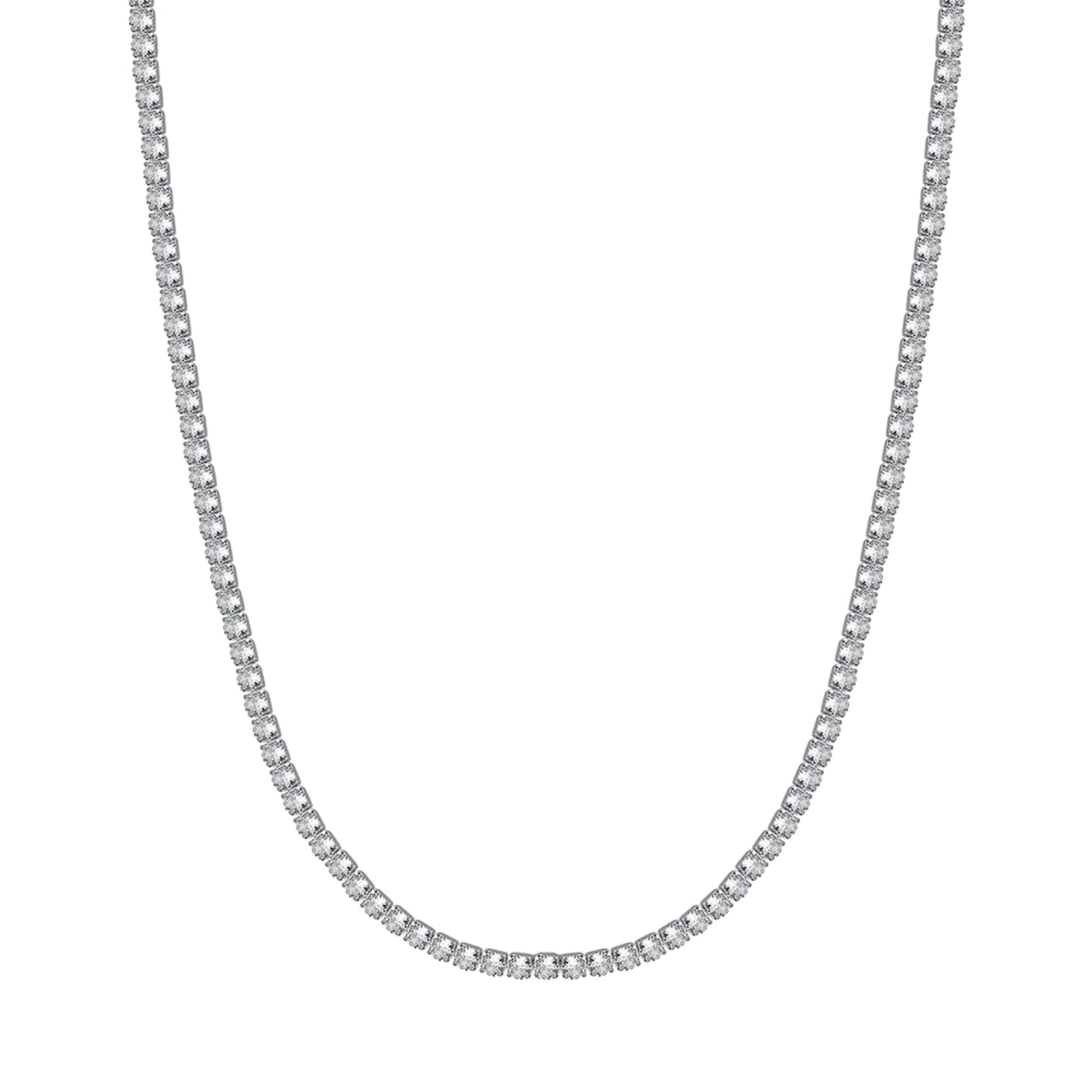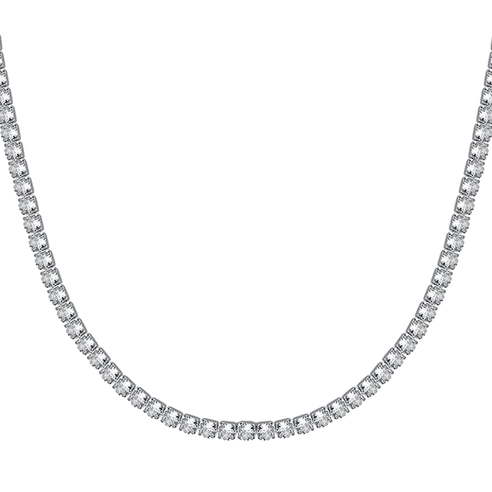 Diseño clásico elaborado en acero inoxidable, con cristales de 4 mm engastados en todo el contorno para un brillo uniforme. Longitud de 50 cm más 5 cm de alargador para un ajuste adaptable. Una pieza de estilo definido y acabado resistente.