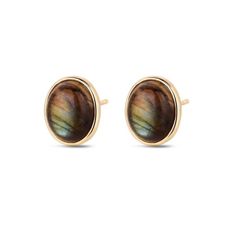 Pendientes de piedra natural anemousita oval de 11 mm con cierre presión