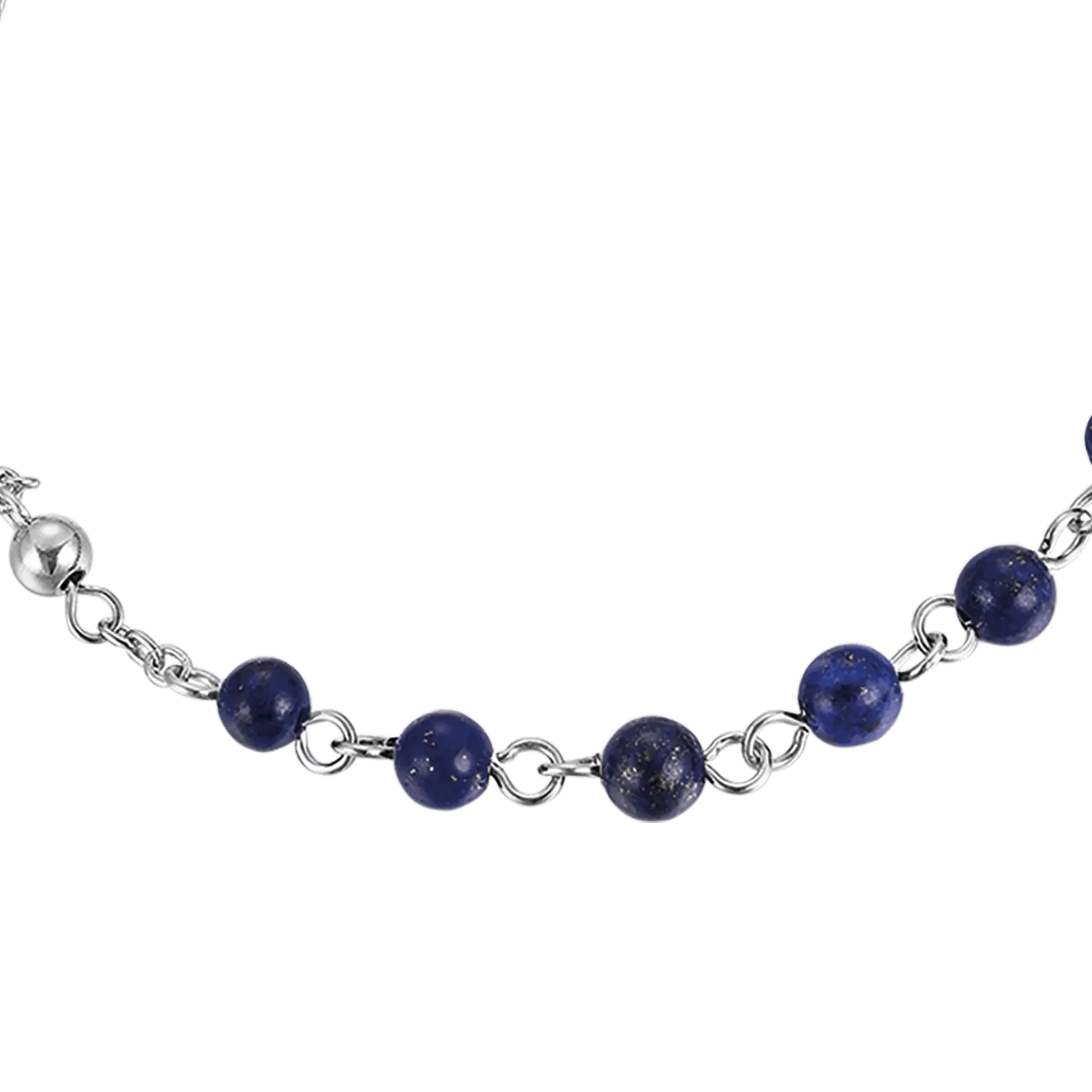 Pulsera Rosario de acero para hombre con elegantes piedras naturales de lapislázuli.