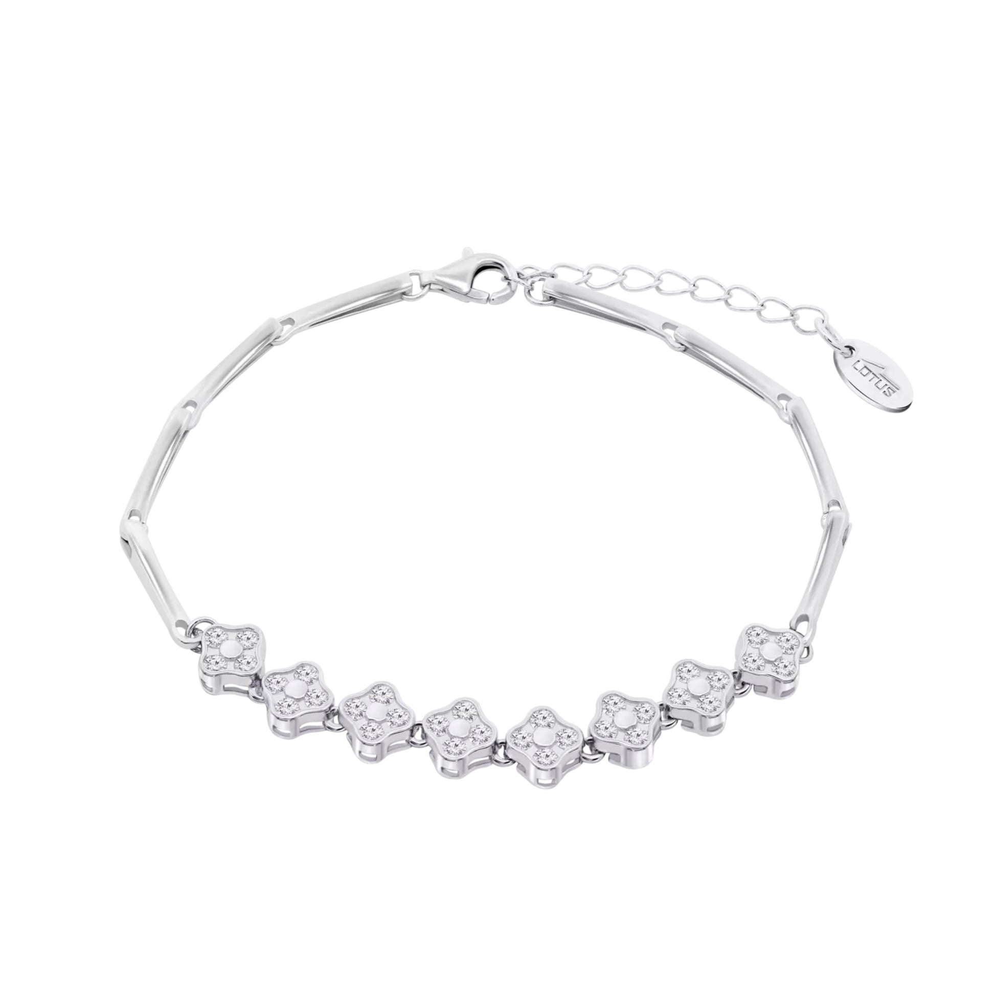Pulsera Lotus para mujer. Diseñada en plata 925 ml. con un baño en rodio, resistente de alta calidad.